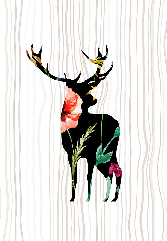 Πίνακας Ελάφι με Λουλούδια