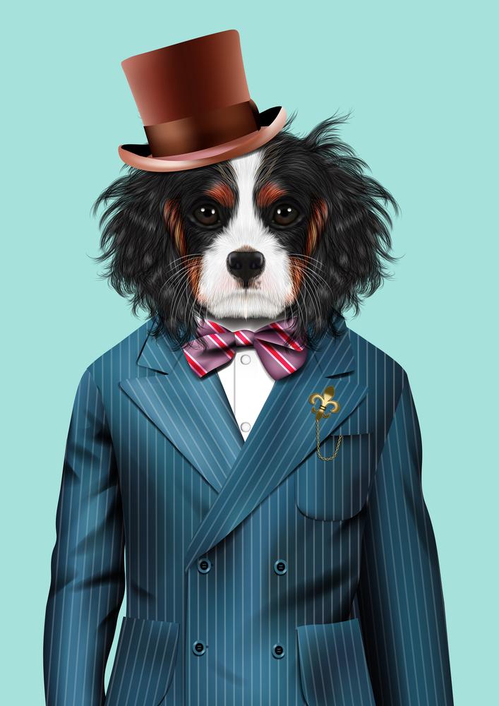 Πίνακας Σκύλος με σακάκι και καπέλο