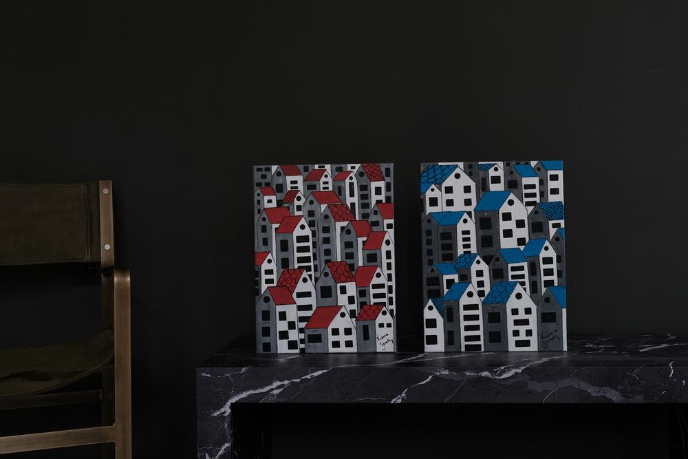 Πίνακας ζωγραφικής σπιτάκια μπλε/κόκκινα 190€